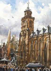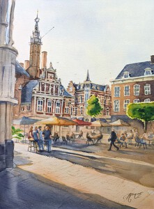 2024Een zomerse marktdag op het Kerkplein in Woerden. Geschilderd op locatie.