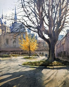 2024In de schaduw van de bomen tegenover het Amstel Hotel. Geschilderd op locatie in de nazomer. (VERKOCHT)