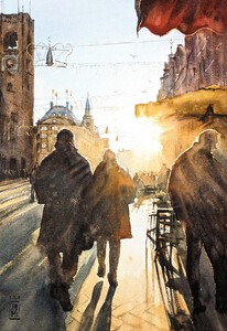 2023Het licht van de winterzon verlicht wandelaars in de Havenstraat van Woerden. (VERKOCHT)